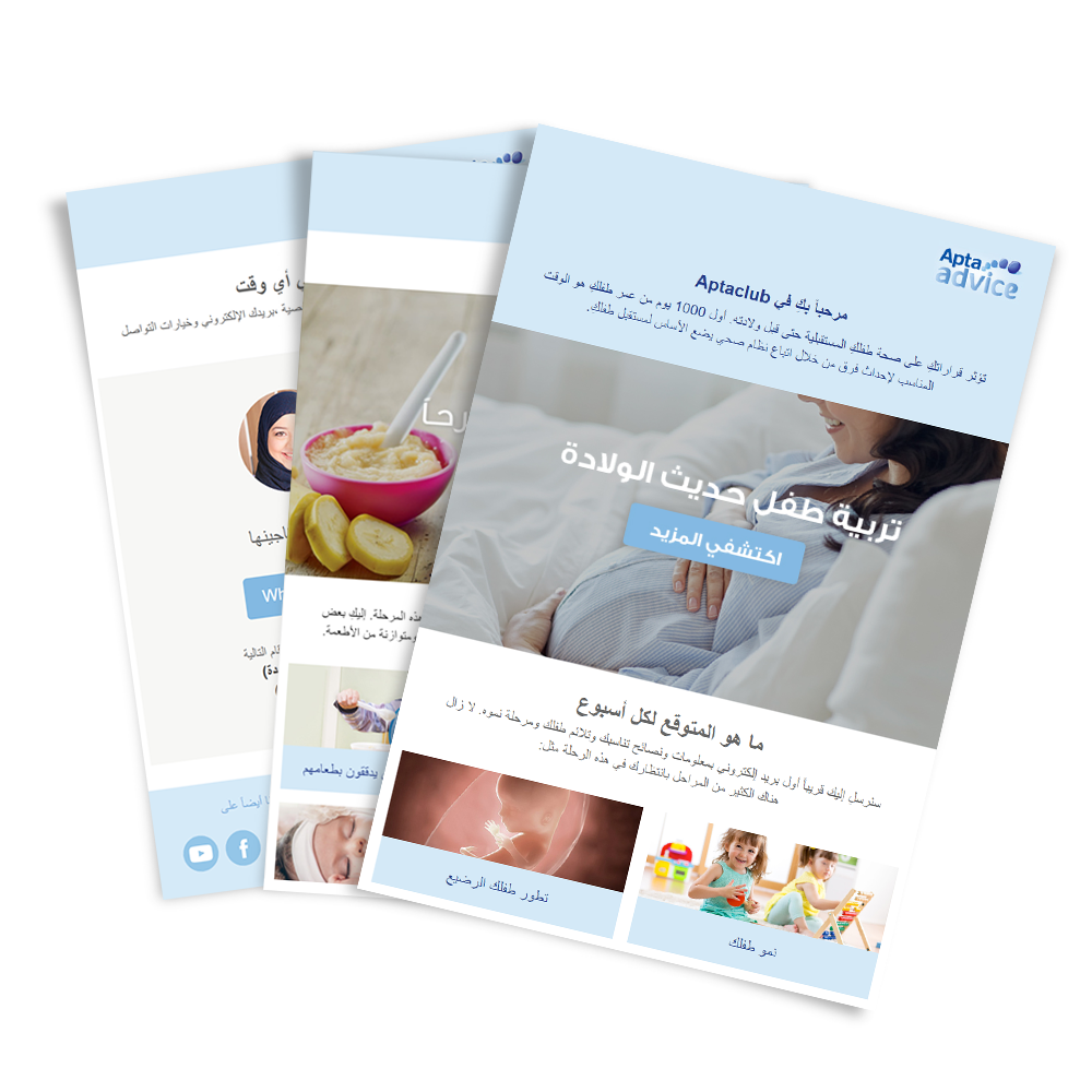 احصلي على تحديثات أسبوعية متعلقة بنمو طفلكِ وحملكِ، بالإضافة إلى نصائح الخبيرات والطرود البريدية وأكثر