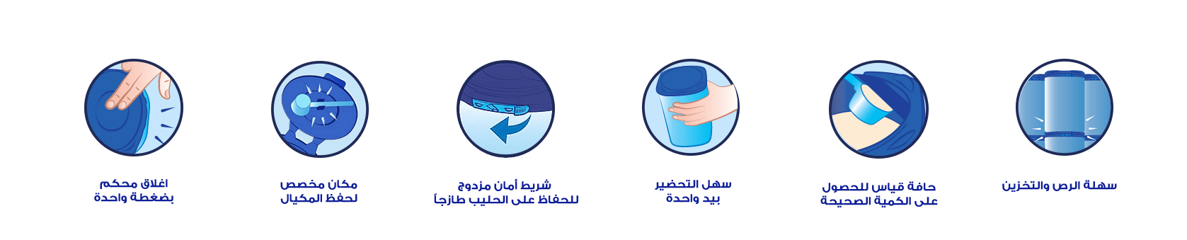 2. دائماً استعملي المكيال المرفق مع المنتج. سوي البودرة بواسطة حافة القياس للحصول على الكمية الصحيحة. لا تضغطي البودرة لزيادة الكمية في المكيال. اضيفي الكمية الصحيحة من البودرة إلى الماء. إن الافراط في زيادة او نقصان عدد المكاييل قد يكون ضاراً بطفلك.