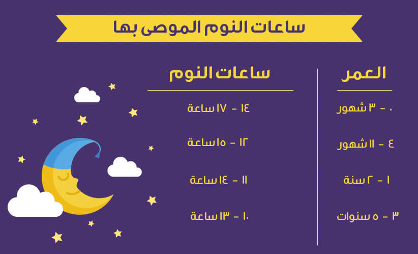 يؤدي عدم الحصول على ساعات كافية من النوم الجيّد إلى إضعاف جهاز المناعة لطفلكِ، لذا احرصي على تشجيعه على الحصول على قسطٍ كافٍ من النوم. وعلى الرغم من أن لكل طفل طبيعته الخاصة، نورد فيما يلي ارشادات عامة حول ساعات النوم التي يحتاج إليها الأطفال من كل مجموعة عمرية وفقا لمؤسسة النوم الوطنية الأمريكية:
