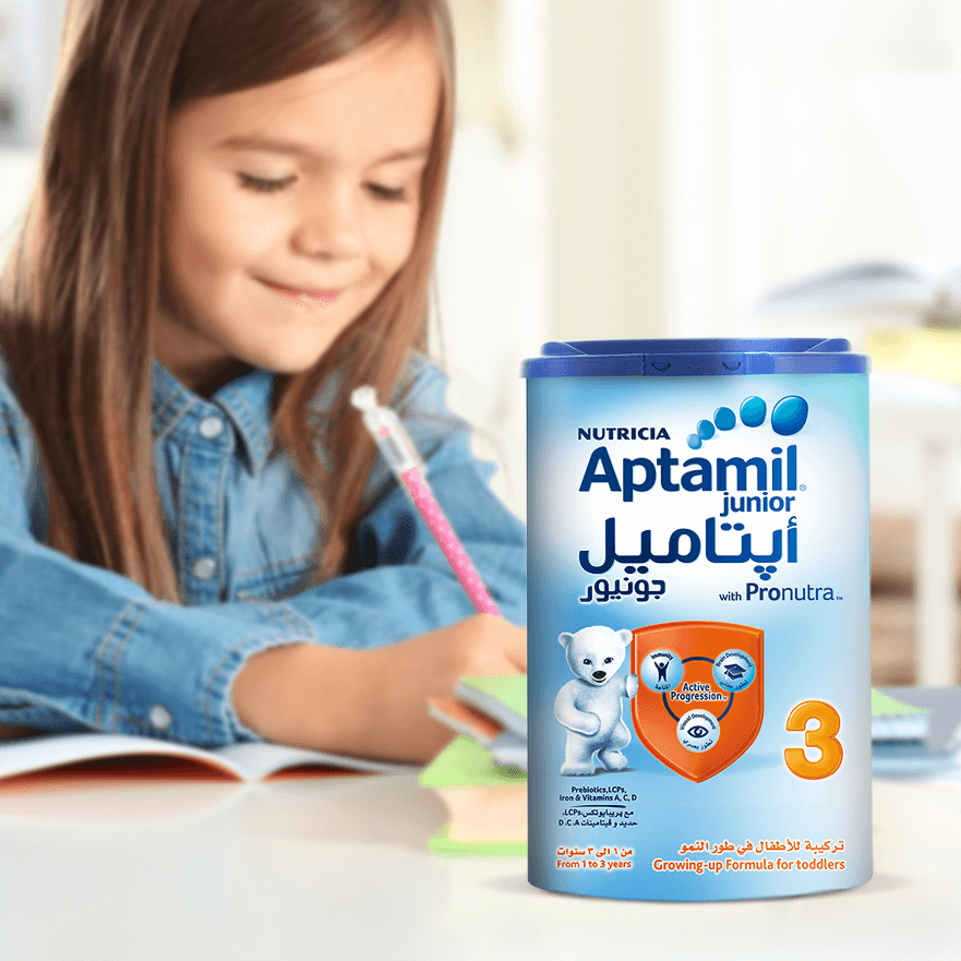 قد تحول كميات الطعام التي يتناولها الطفل الأصغر سناً دون حصوله على العناصر الغذائية التي يحتاجها يومياً. وفي مثل هذه الحالة، اطمئني فهنا يأتي دور حليب المتابعة والنمو ليوفر لك راحة البال. لقد تم تصميم حليب أپتاميل الكامل للأطفال في طور النمو بشكل خاص لتوفير الدعم للنظام الغذائي للطفل عبر مراحل النمو المختلفة، لذلك لا داعي للقلق إذا كان طفلكِ صعب المزاج!
