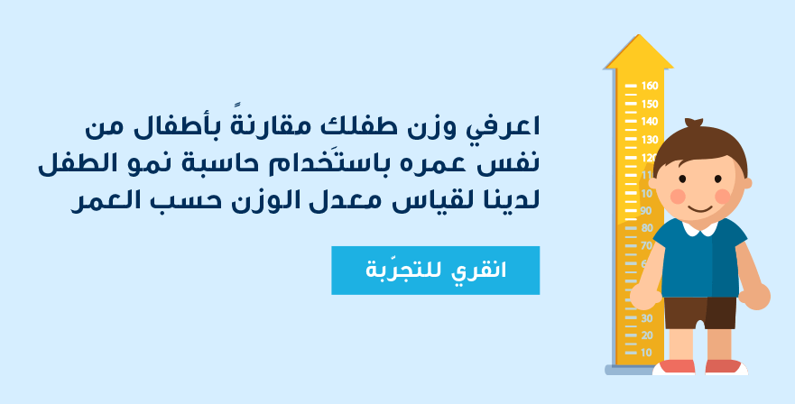 إذا شعرتِ بالقلق حيال وزن طفلكِ، بإمكانكِ استخدام حاسبة نمو الطفل لدينا لمقارنة وزنه مع أطفال آخرين من نفس عمره باستخدام بيانات من منظمة الصحة العالمية (WHO) تقيس متوسط الوزن حسب العمر.