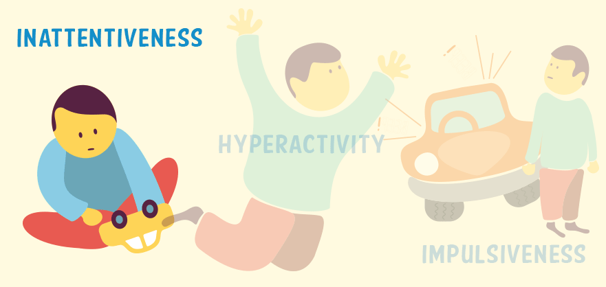 ADHD symptoms in children fall into three categories; inattentiveness, hyperactivity and impulsiveness.
