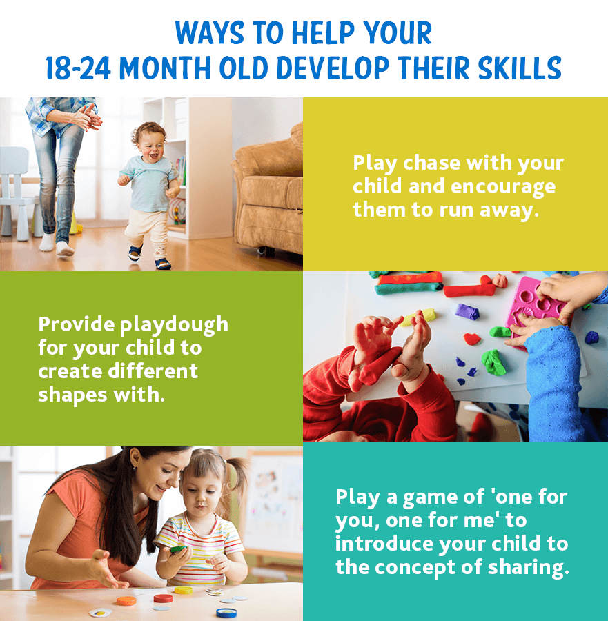 Take a look at our toddler development checklist for an idea of what skills you can expect to see emerging before your child turns two: