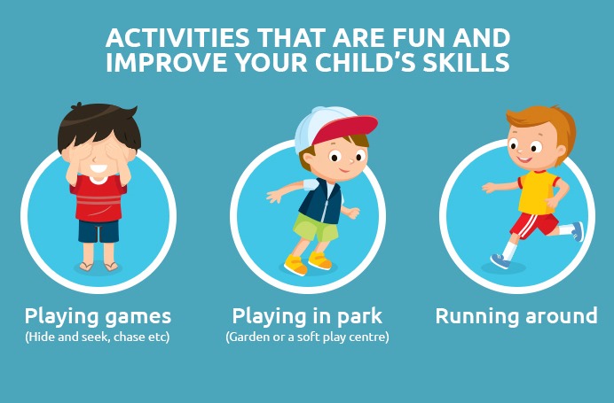The NHS guidelines on activity are that a toddler should be active every day for at least 180 minutes, and a child under five shouldn’t be inactive for any long periods (except for sleep) during the day. Most parents will be well aware that children under five usually love to be active, whether that’s through play or just running (or crawling) around and exploring their world – so meeting this quota shouldn’t be difficult. There are hundreds of ways for a child to get active, including: