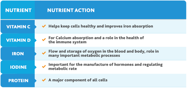 Growing-up milk provides a wide range of benefits to fit into a healthy diet, as opposed to adult’s milk which is not recommended for your child younger than 6 years as it contains higher levels of sodium and proteins, lower levels of some minerals & vitamins and no fibres. On top, it lacks essential fatty acids that are key for healthy brain development.